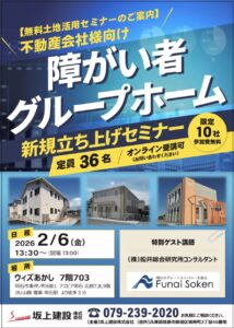- セミナー名:障がい者グループホーム 新規立ち上げセミナー